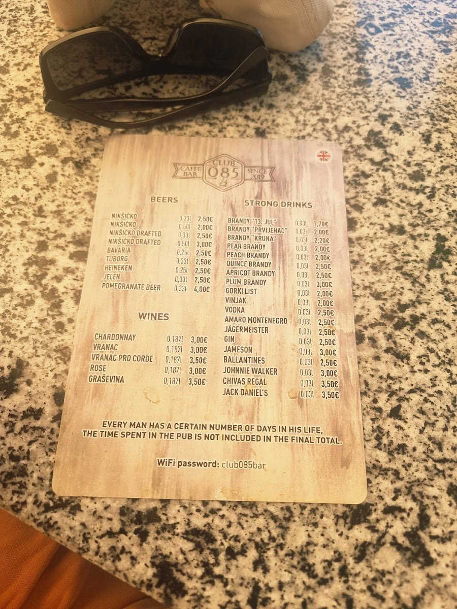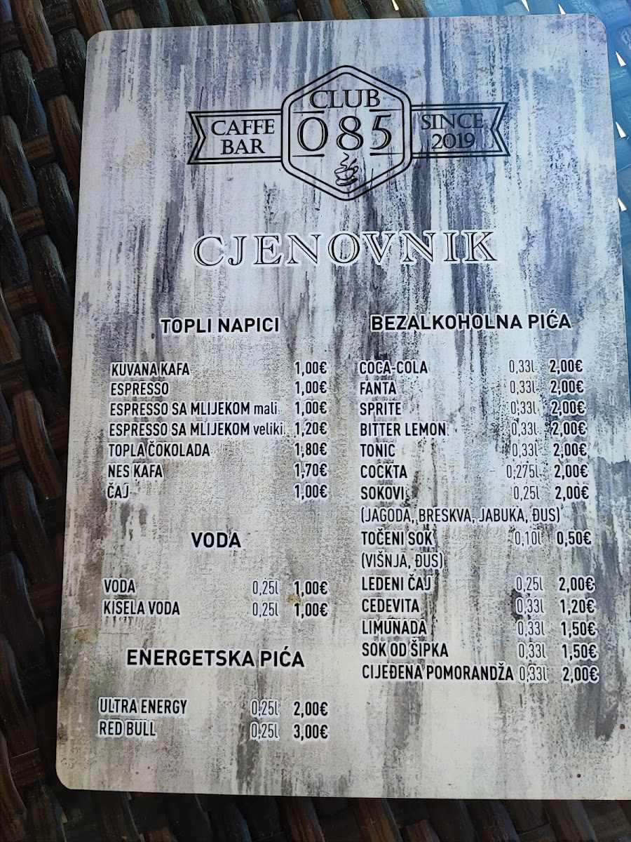 As you arrive, you’ll appreciate the convenience of free parking, particularly during the off-season. This allows you to linger over your drink without the stress of finding a space. Club 085 has a few indoor tables, but be sure to take advantage of the inviting terrace area. Here, you can bask in the Mediterranean sun while sipping a freshly brewed cappuccino, just like our guest Maxim Pashnin experienced. Maxim paints a lovely picture of the café's friendly staff, who communicate effortlessly in English, Serbian, or Russian, ensuring you feel at home regardless of your linguistic background.